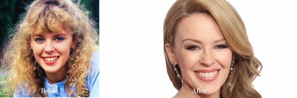 Australia’s pop princess has amazing celebrity teeth, but they were not always white. She had her teeth whitened since she started on the Neighbours Series all that time ago.