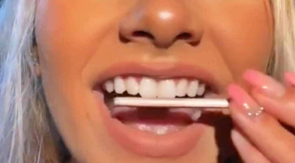 There are multiple videos on TikTok where people use hydrogen peroxide to whiten their teeth. While hydrogen peroxide is used in whitening strips, the percentage of the chemical varies and should only be prescribed by a dentist. Hydrogen peroxide when used without understanding its effects can lead to irritated gums and potentially long-term sensitivity.