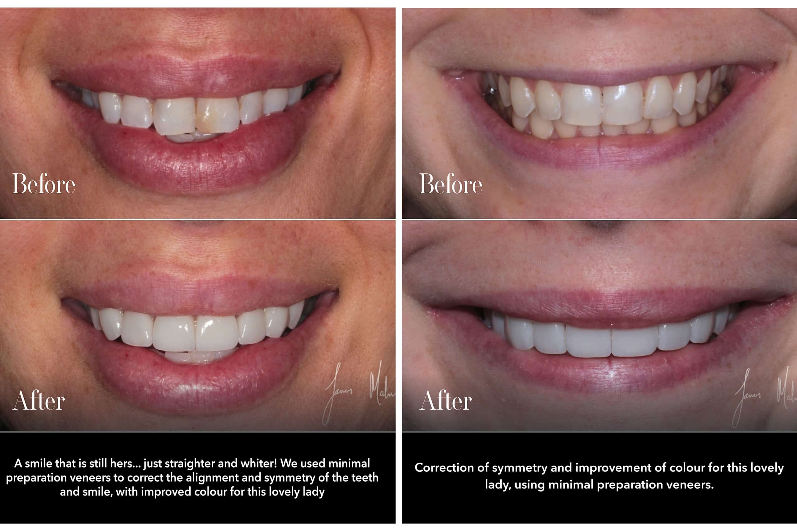 Veneers are a leading cosmetic treatment because they deliver immediate improvements in colour, shape and symmetry. Veneers are thin shells placed over the front of teeth and are ideal for fixing chips, worn enamel, gaps, uneven edges and deep staining.